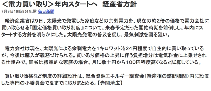 余った電力が売れるのが大きな魅力の太陽光発電。11月~その売る電力を2倍で買取る話になってきています。