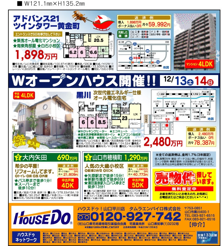 あけましておめでとうございます。今年もハウスドゥ!山口平川店をよろしくお願いします。